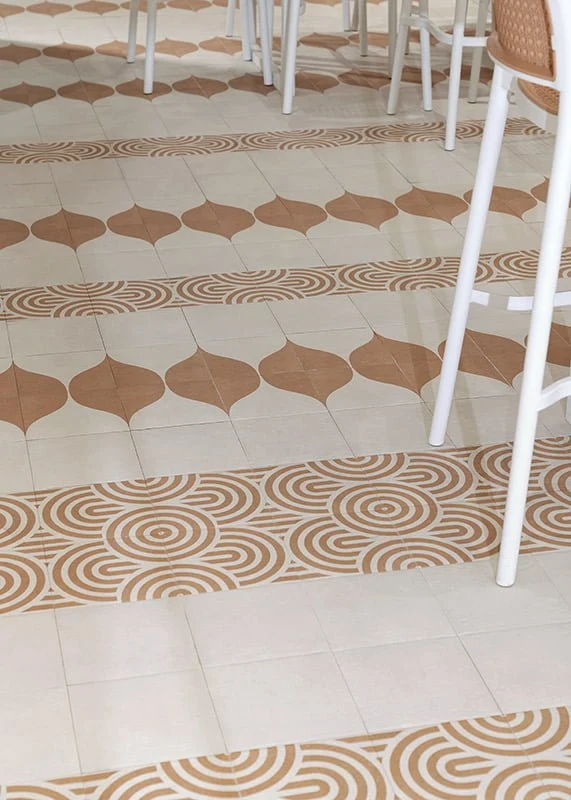 Tulajdonságok: barna fehér matt padlólap 20x20cm 14000-16000 Ft/m2
